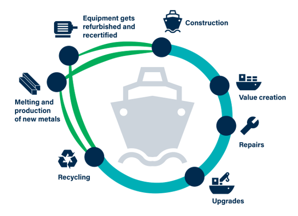 Vi tilbyr tjenester gjennom hele livssyklusen til skip – fra nybygg og ombygginger til reparasjoner, riggopplag og resirkulering. Alt vi gjør er forankret i bærekraft, med fokus på å redusere utslipp, forlenge levetiden til skip og utstyr og ha mest mulig gjenbruk av materialer og utstyr.